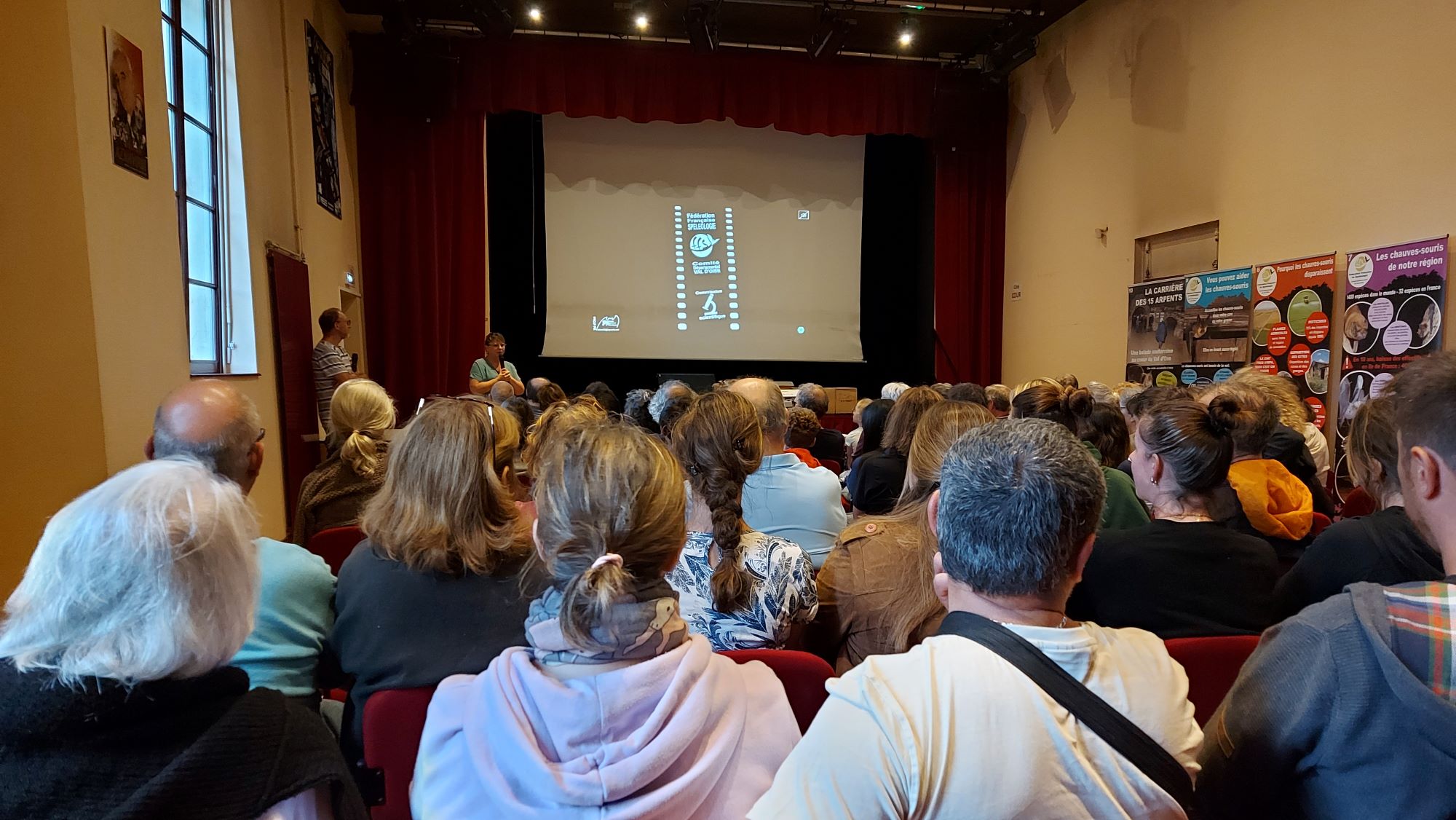 C’est la ville de Presles qui nous a accueilli pour cette troisième nuit de la chauve-souris. A la salle Jeanne d’Arc, 73 personnes ont assisté à la conférence animée par Viviane et Pierre Bancel, membres du Comité Départemental de Spéléologie du Val d’Oise. Cet animal « EXTRAORDINAIRE », comme l’a mentionné Pierre à plusieurs reprises lors de sa conférence, est assez méconnu du grand public. Les nuits d’été, des silhouettes zigzaguent à la nuit tombée dans le ciel sans bruit, difficile à voir ou d’en déterminer l’espèces.