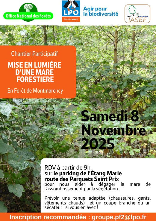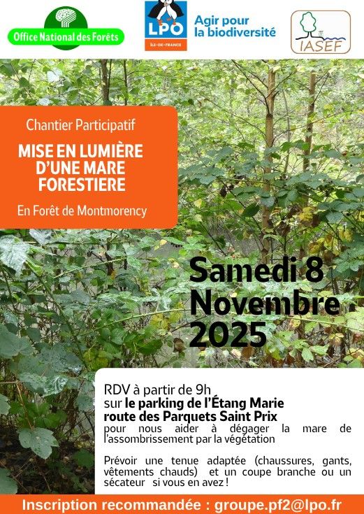 Nous vous invitons à un chantier participatif en forêt de Montmorency organisés conjointement par le groupe PF2 de la LPO IdF, l'IASEF et l'ONF.