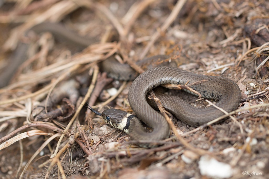 La couleuvre helvétique, natrix helvetica, se distingue aujourd’hui de la couleuvre à collier, natrix natrix, par son ADN. Son aspect est le même. Seule natrix helvetica est présente en France. On l’appelle encore improprement couleuvre à collier, elle est effectivement reconnaissable à sa taille et à son collier blanc qui s’estompe avec l’âge.