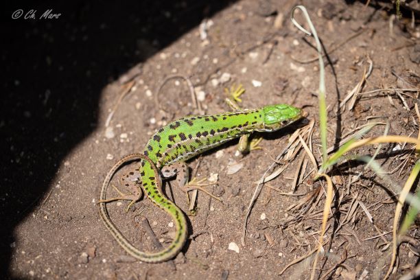 Le lézard des souches, lacerta agilis, apprécie les milieux forestiers ouverts (coupes forestières, landes, lisières, tourbières, dotés de tas de pierres. Vu ces habitats exigeants, de plus en limite de répartition ouest en France, il est très localisé dans le Val d’Oise et a été très peu observé depuis l’an 2000.