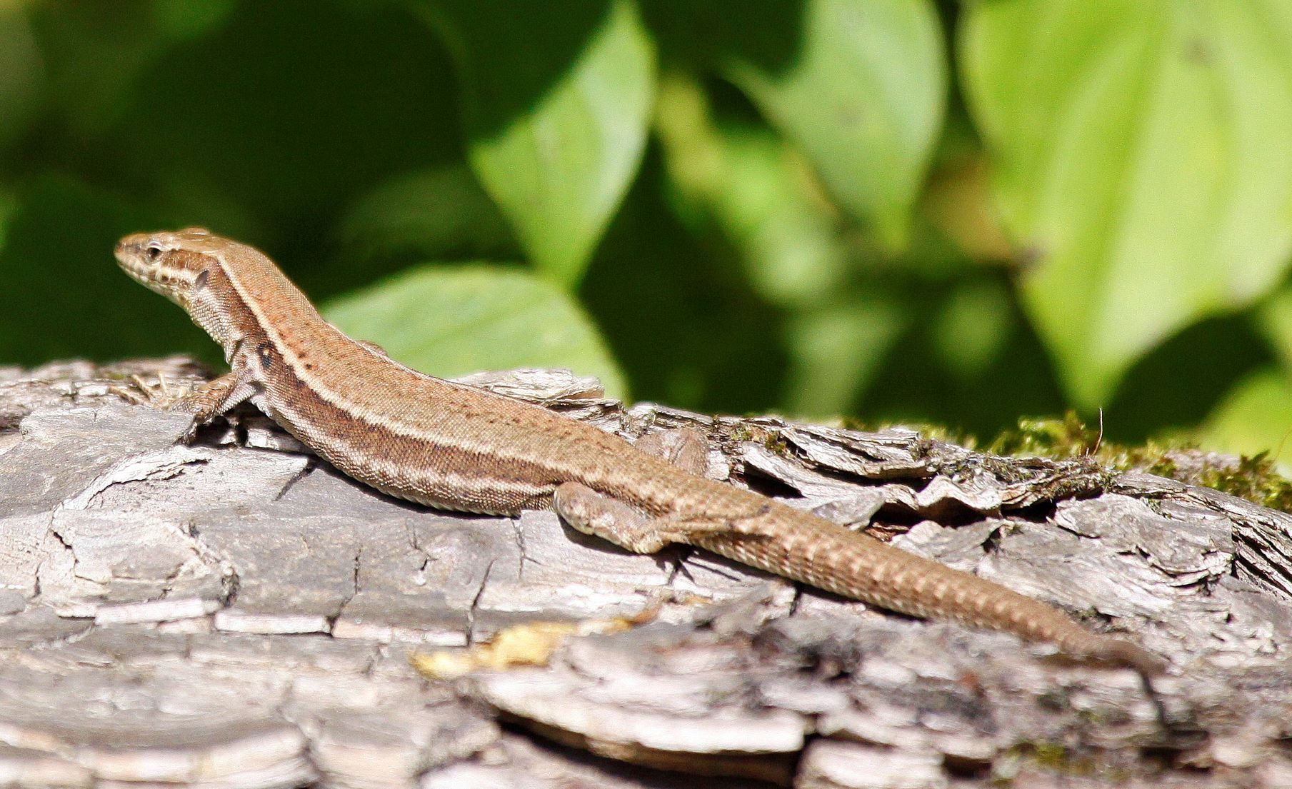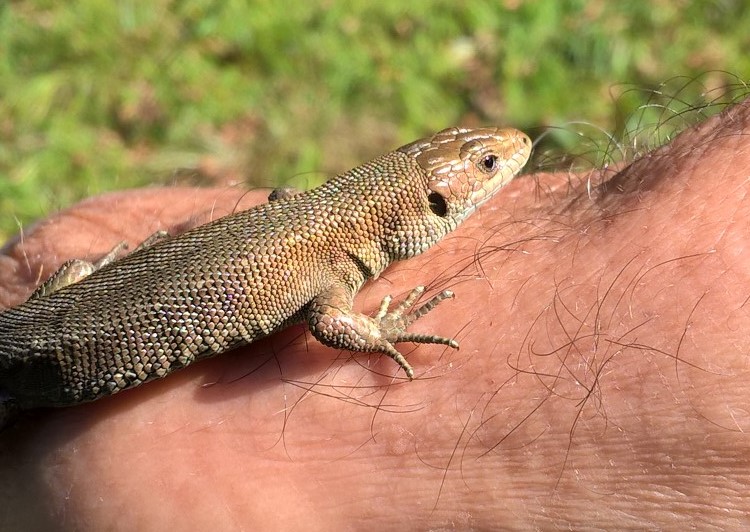 Le lézard à 2 raies, lacerta bililineata, précédemment appelé lézard vert, plus grande espèce locale, est une espèce méridionale qu’on rencontre dans le Val d’Oise de façon très localisée sur les zones ouvertes exposées au sud telles que les coteaux calcicoles, essentiellement dans le Véxin. Son observation y est aisée au soleil.